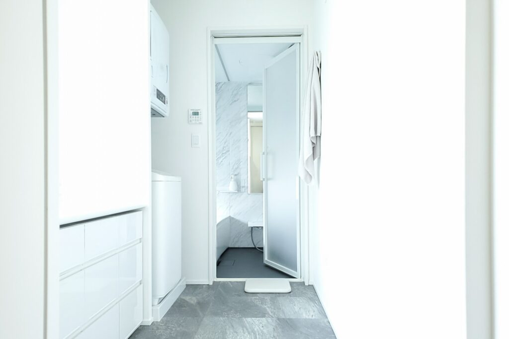 洗面所や脱衣所は床下点検口の設置におすすめの場所です。洗面台やお風呂場付近であるため、水漏れやシロアリの点検がしやすいメリットがあります。