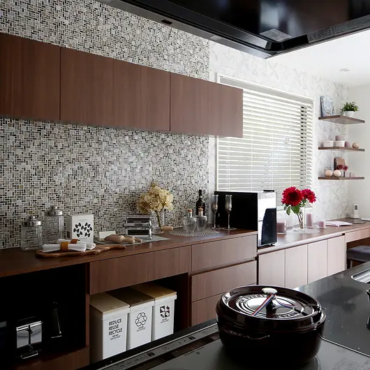 都会的な雰囲気のイメージですが家具などにはウォールナットをセレクトし、木質感を生かしています。