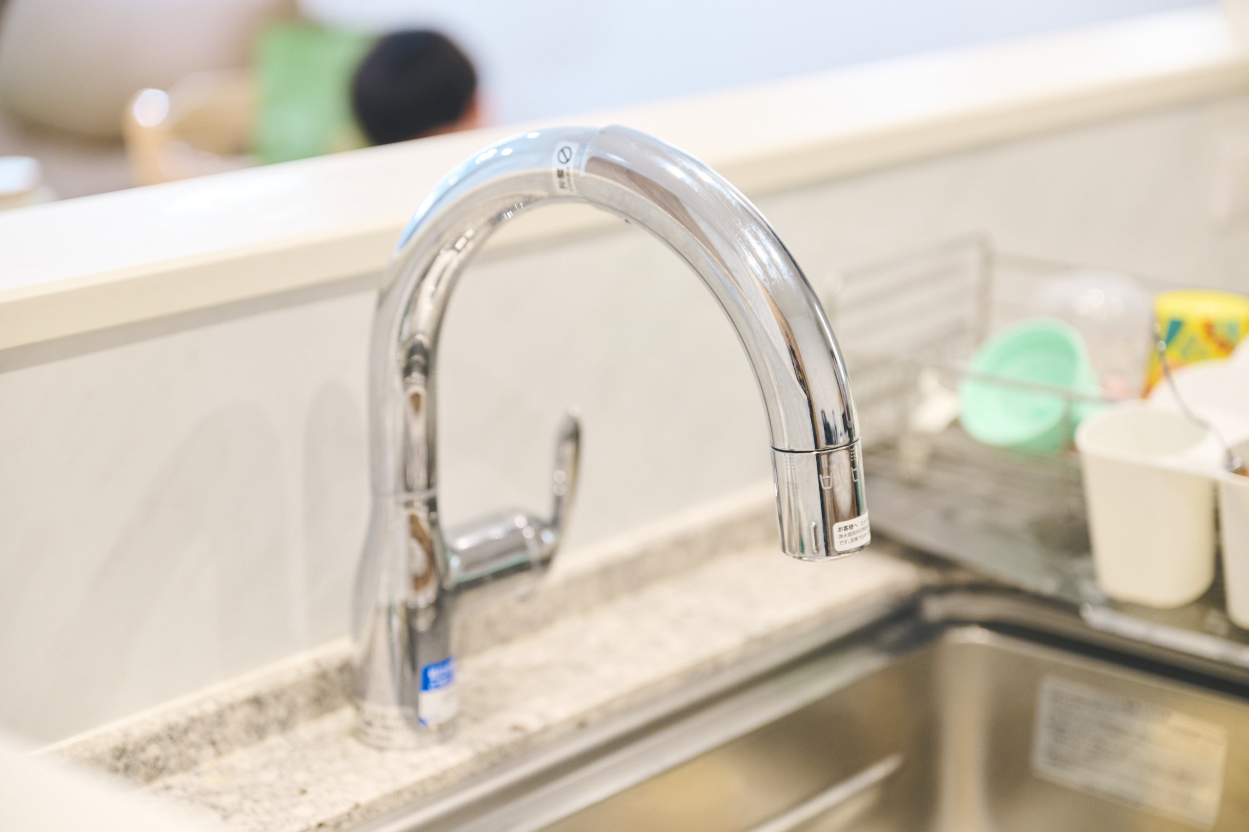 手が汚れていても水を出せるタッチレス水栓はとても便利で重宝しているとのこと。