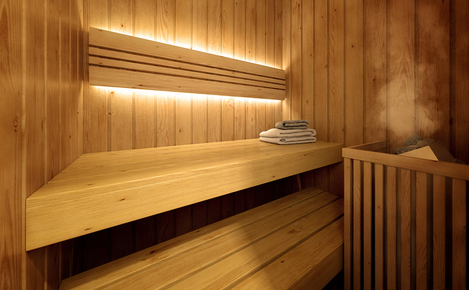 快適性と安全性を高めるため、細部まで設計を追求したサウナ空間。