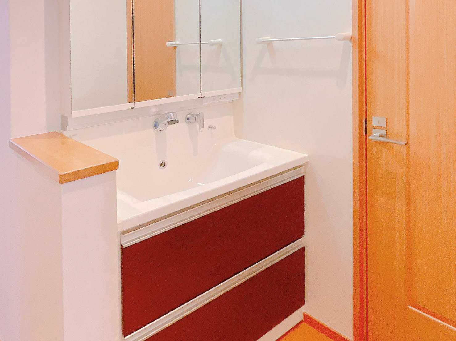 機能性に富んだ三面鏡と奥行きのある引き出しで収納スペースも充実。