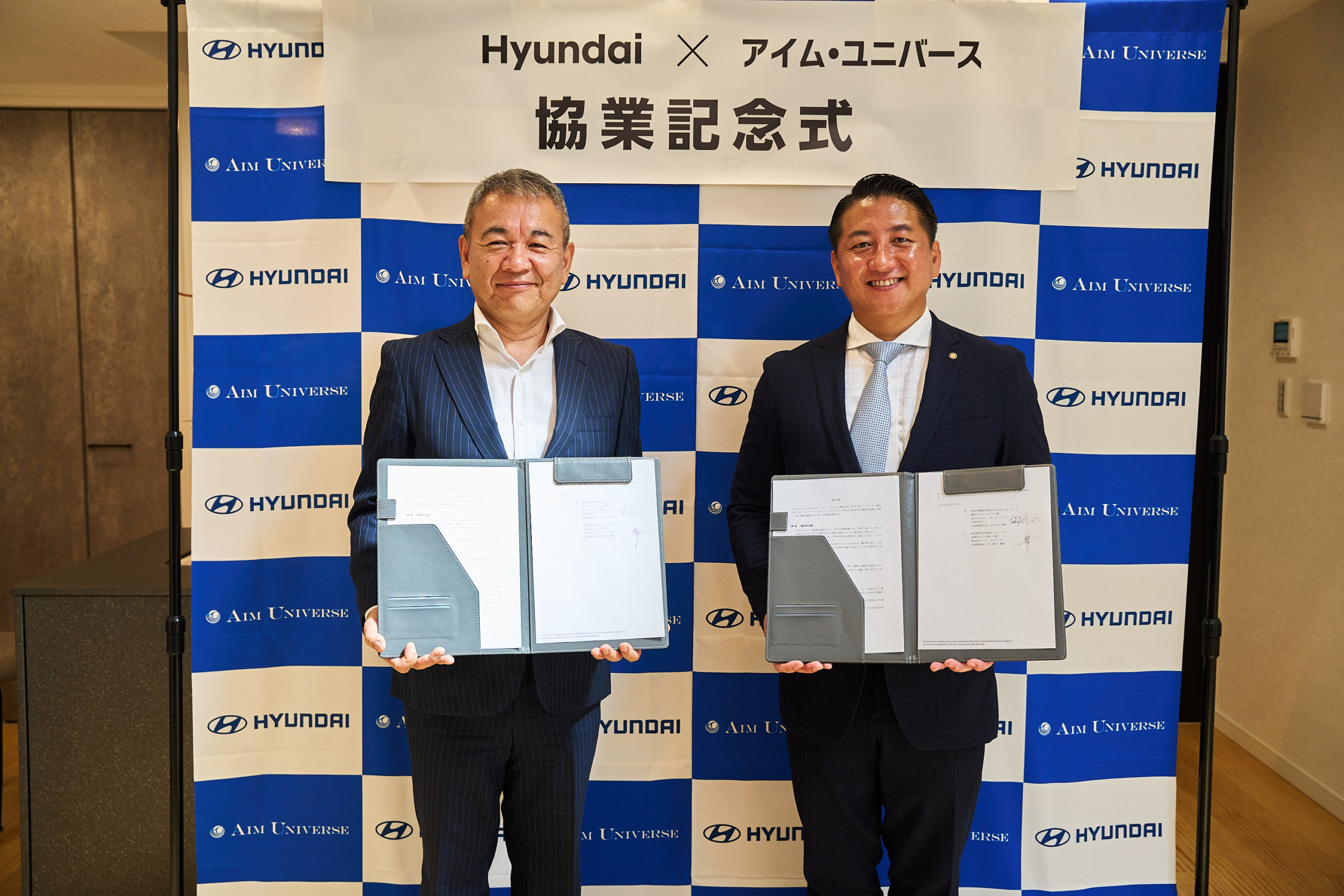 左からHyundai Mobility Japan代表取締役社長 七五三木 敏幸氏、アイム・ユニバース代表取締役CEO 藍川 眞樹