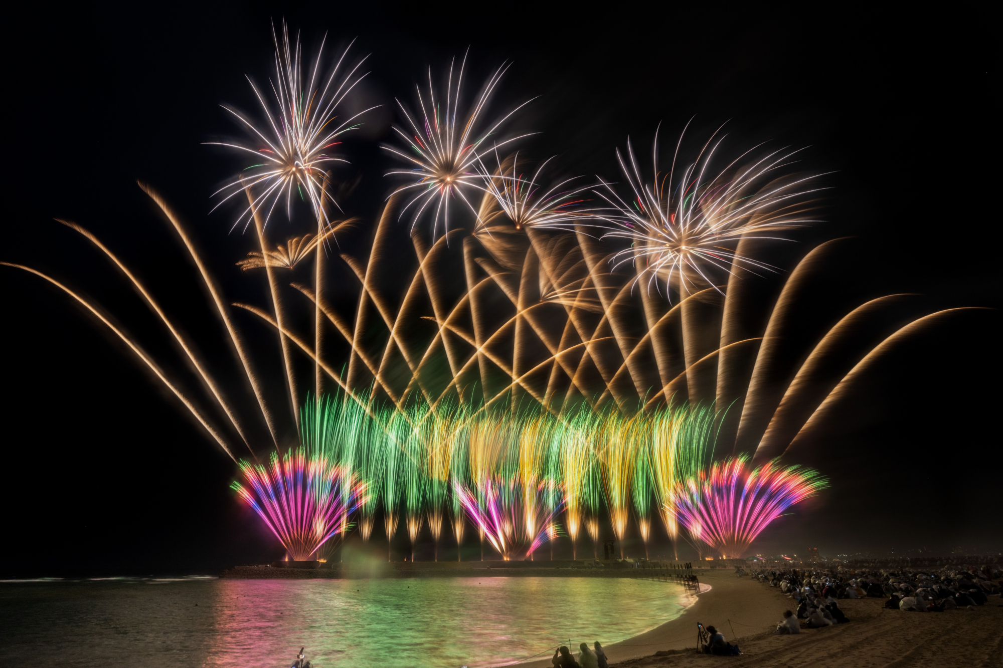 世界的デザイナー コシノジュンコ氏が手がけるデザイン花火を最新テクノロジーによって音楽に合わせた花火ショーをぜひご覧くださいませ。